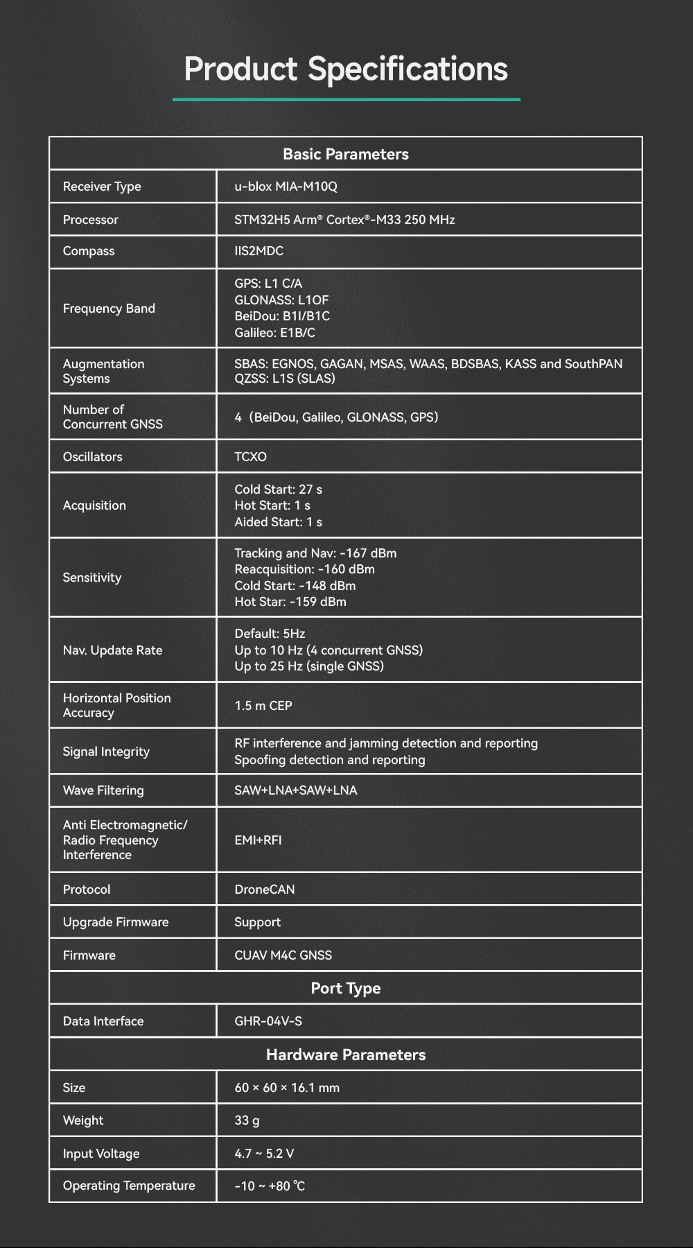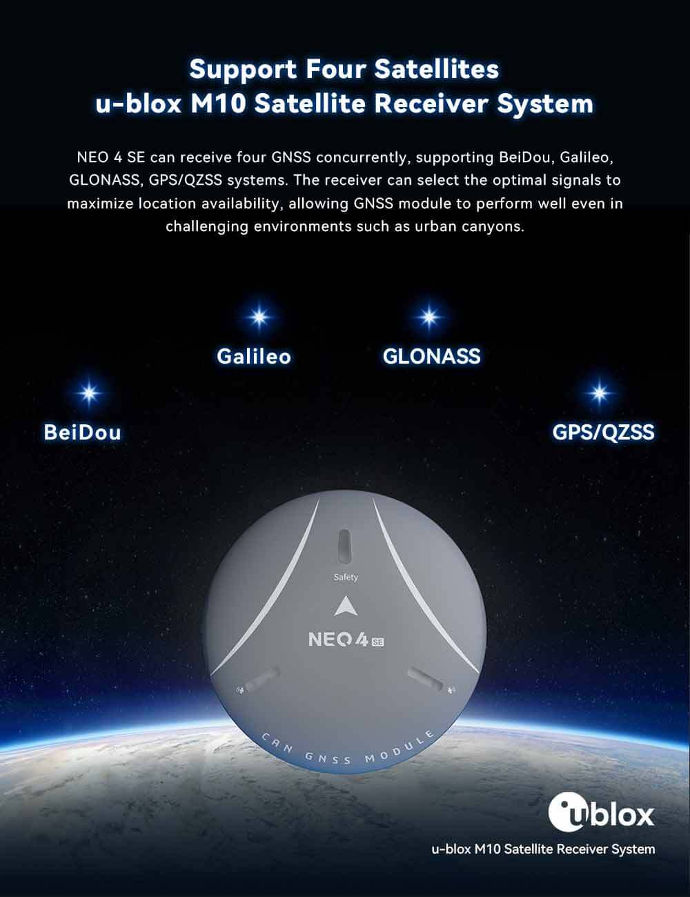 1– Support Four Satellites u-blox M10 Satellite Receiver System