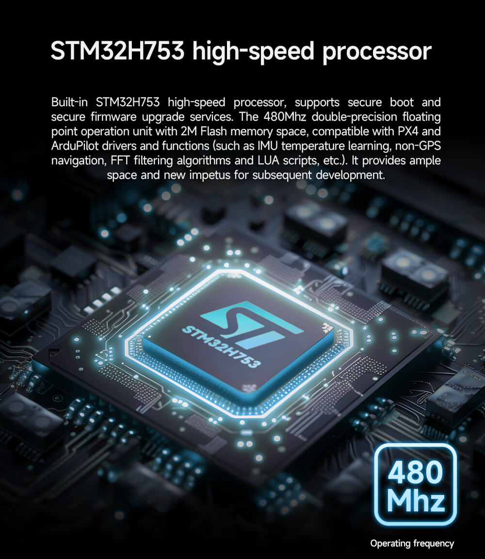 3–STM32H753 processor, dual industrial-grade IMU redundant design